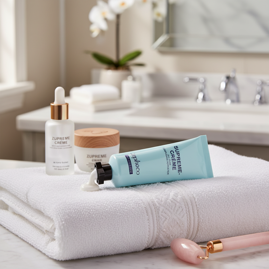 ✅ Gently remove Supreme Crème with any oil-based cleanser or micellar water. For stubborn body application, massage with a cleansing oil first, then rinse.